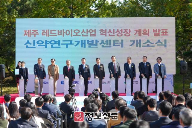 제주도는 8일 ‘제주 바이오산업 혁신을 선도할 레드바이오산업 육성’ 비전을 담은 「제주 레드바이오산업 혁신성장 계획」을 발표했다. 제주대 약학대학 앞 잔디광장에서 진행된 이날 행사는 제주 신약연구개발센터 개소와 연계해 열렸다.