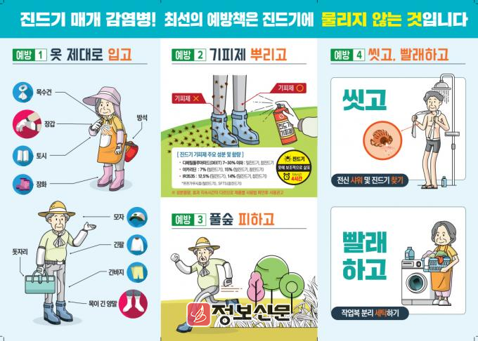 지영미 질병관리청장은 “쯔쯔가무시증이 가을철에 집중 발생하므로, 야외활동 시 털진드기에 물리지 않도록 풀밭에 앉을 때 돗자리를 사용하고, 풀숲에 옷을 벗어놓지 않는 등 예방수칙을 철저히 준수하면 예방이 가능하다”며 다시 한번 예방수칙 준수를 당부하였다.