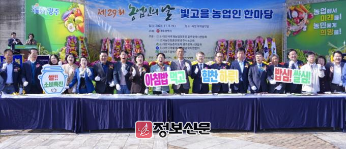 광주광역시(시장 강기정)는 농업인의 날(11월 11일)을 기념해 9일 시청 야외음악당에서 ‘제29회 농업인의 날-빛고을 농업인 한마당’을 개최했다.