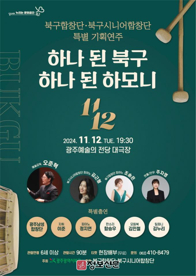 11일 북구(구청장 문인)에 따르면 오는 12일 저녁 7시 30분부터 9시까지 광주예술의전당 대극장에서 ‘북구합창단․시니어합창단 특별 기획공연’이 열린다.