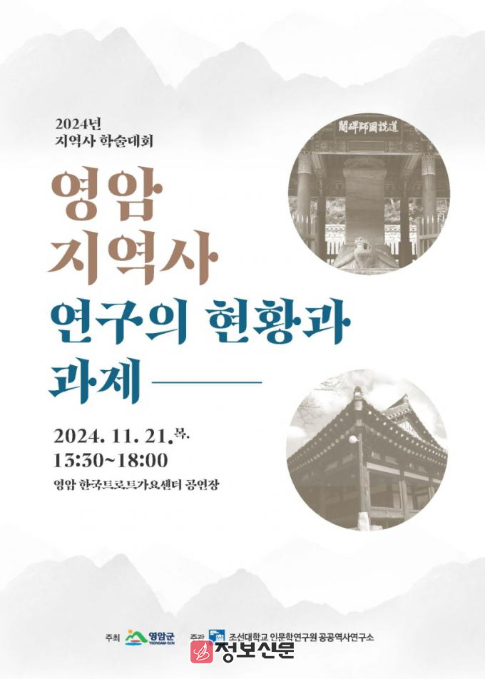 학술회의에서는 ▲천선행 조선대 교수의 ‘영암지역 선사문화의 분포와 전개’ ▲손성필 조선대 교수의 ‘고려‧조선시대 영암 도갑사의 역사와 위상’ ▲권수용 한국학호남진흥원 수석연구위원의 ‘영암지역 향약자료와 그 특징’ ▲최은진 한국외대 교수의 ‘일제하 전남 영암 영보정 사건과 지역사회’ ▲노영기 조선대 교수의 ‘해방 후 영암지역의 변화와 학살’의 주제 발표가 이뤄진다.