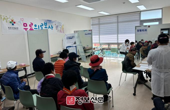 이런 상황에서 목포시 이로동, 자생조직 연합과 목포시의료원은 최형호 목포시의료원장을 단장으로 의사 7명, 간호사 8명, 진단검사의학과 행정인원 등 총 21명으로 봉사단을 구성해 의료취약지인 증도면을 찾았다.