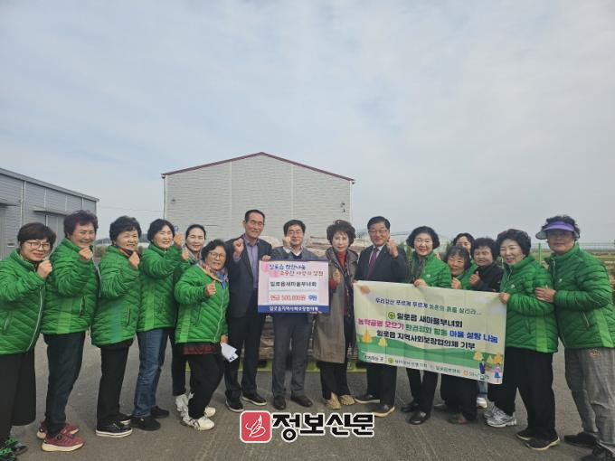 이번 기부는 일로읍 새마을부녀회에서 농경지, 하천, 도로변에 농약 빈 병을 수거하여 재활용한 사업 수익금의 일부로 마련했고, 행사는 마을 설탕 나눔 행사와 함께 진행했다.