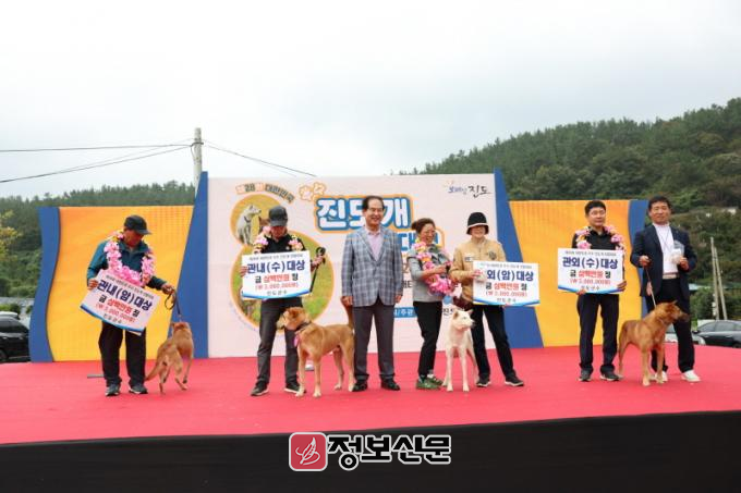 2년 이상 성견에게 수여하는 진도군수상(대상)에는 관내 ▲김응길 출진견 ‘초희’(암), ▲강성홍 출진견 ‘수범’(수), 관외 ▲서울 성동구 양완석 출진견 ‘다운’(암), ▲충북 청주 권대식 출진견 ‘강호’(수)가 대상의 영예를 차지하고 각각 300만 원의 상금을 받았다.
