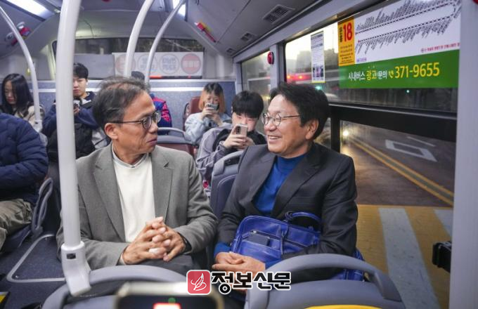 강 시장은 이날 출근길 시내버스에서 만난 시민들에게 대·자·보 도시에 대해 설명하고, 의견을 구했다. 또 대중교통을 이용해 출퇴근하는 시민들의 고충을 귀담았다. 강 시장은 “시내버스는 정시성과 연결성이 강화돼야 하는 만큼 부족한 부분을 세심히 신경쓰겠다”고 약속했다.