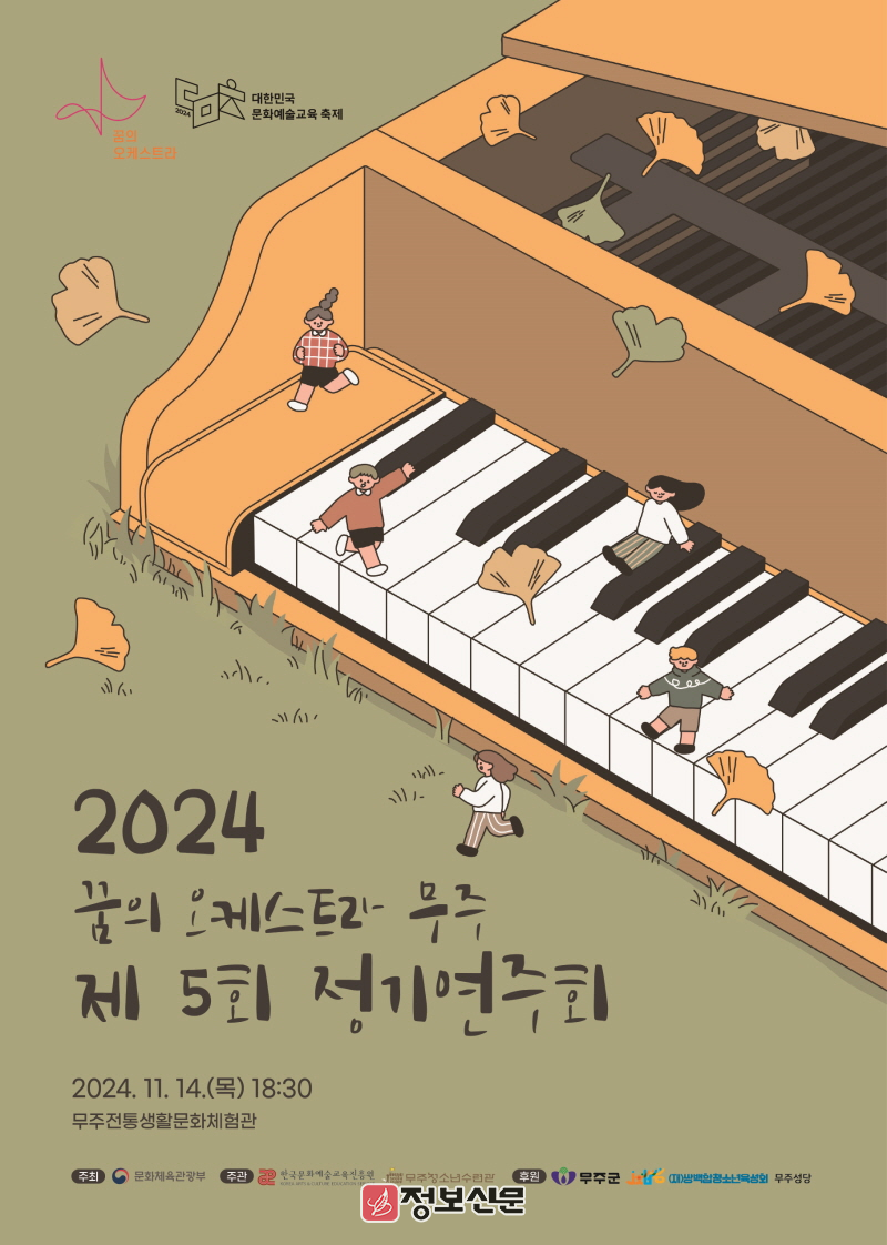 이날 연주회는 문화체육관광부가 주최하고 한국문화예술교육진흥원과 무주청소년수련관이 주관하며 무주군과 (재)쌍백합청소년육성회, 무주성당이 후원한 가운데 펼쳐질 예정이다.