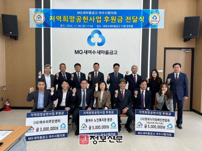 ![]() MG새마을금고 여수시협의회 지역희망공헌사업 후원금 전달식이 지난 8일 새여수새마을금고 본점에서 열렸다.