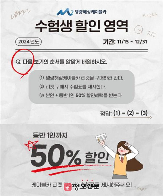 ![]() 명량해상케이블카, 수험생 할인이벤트 진행 |