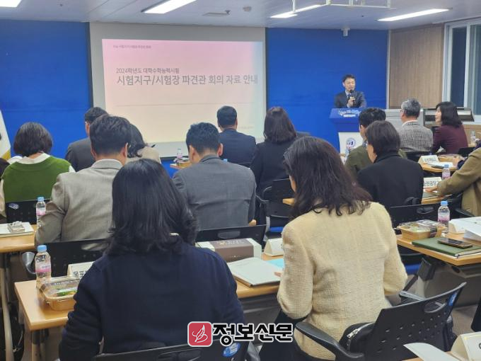 전남교육청은 이날 청사 중회의실에서 ‘2025학년도 대학수학능력시험 지구‧시험장 파견관 회의’를 열고, 시험장 준비 상황과 수송 대책 등을 점검했다.