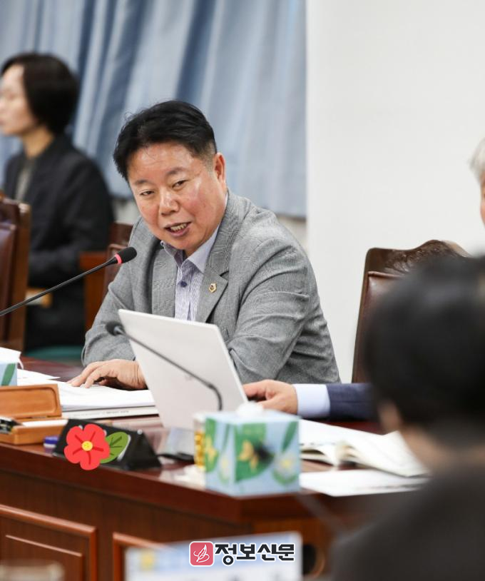 ![]() 지난 11월 7일 전라남도의회 제386회 제2차 정례회 보건복지환경위원회 소관 여성가족정책관 행정사무감사 에서 임지락 의원이 집행부를 향해 질의하고 있다. |