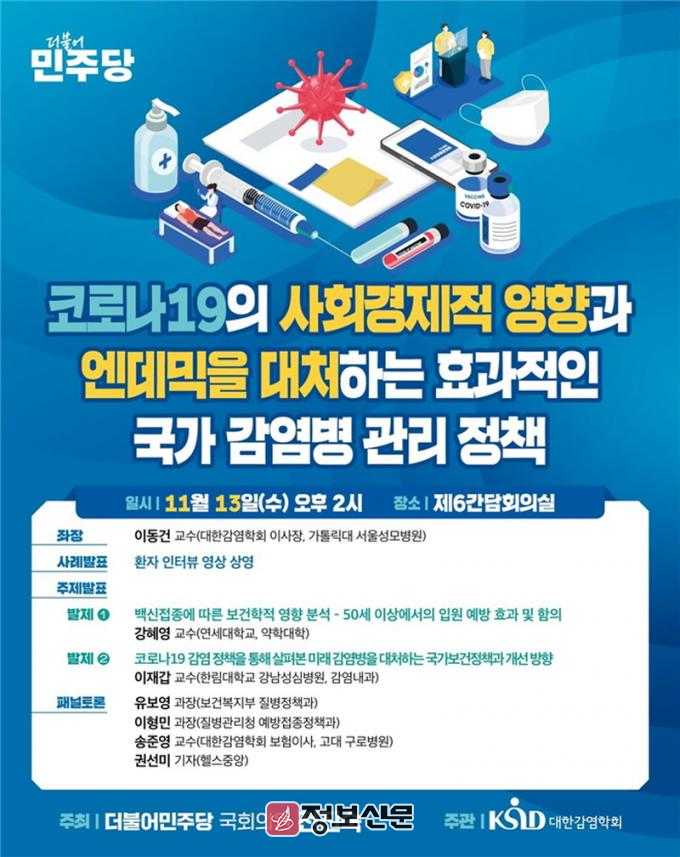 토론에서는 유보영 보건복지부 질병정책과 과장, 이형민 질병관리청 예방접종정책과 과장, 송준영 대한감염학회 보험이사, 권선미 헬스중앙 기자가 제도개선방안을 논의할 예정이다.