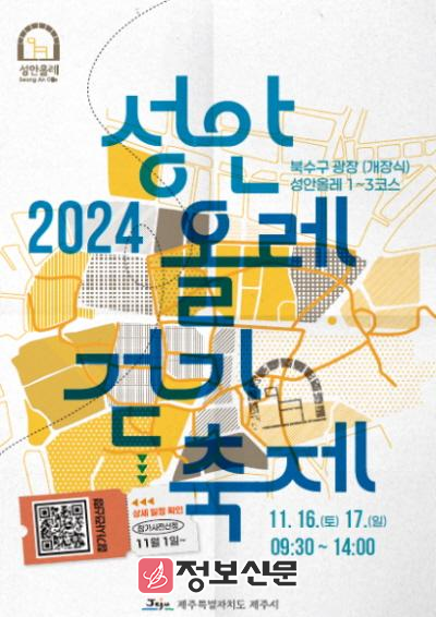 이번 축제는 제주시 원도심의 역사와 문화, 자연환경을 잇는 성안올레를 널리 알리기 위해 추진되며, 성안올레 3코스 개장식은 16일 오전 9시 30분에 북수구 광장에서 열린다.