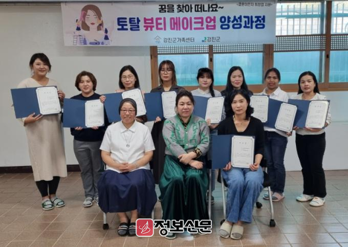강진군의 지원으로 운영된 토탈뷰티 메이크업 과정은 결혼이민여성들의 취업역량 강화와 미래의 삶에 대한 준비를 위한 성장지원 과정이다. 또한, 강진 관내 어르신들을 위한 봉사를 실천하는 나누리 봉사단과 연계해 네일아트 및 메이크업 봉사활동을 하며 나눔을 실천하는 기회가 됐다.