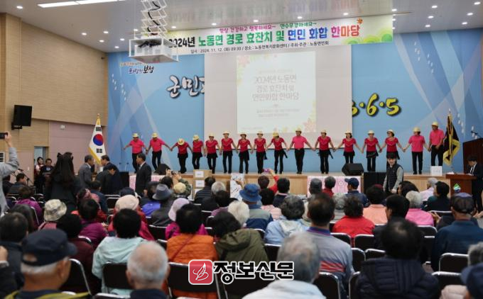 이번 행사에는 노동면민회(회장 추교헌) 주관했으며, 지역 어르신 300여 명이 참석한 가운데 축하공연, 점심 식사, 기념품 증정 등의 프로그램이 진행됐다.