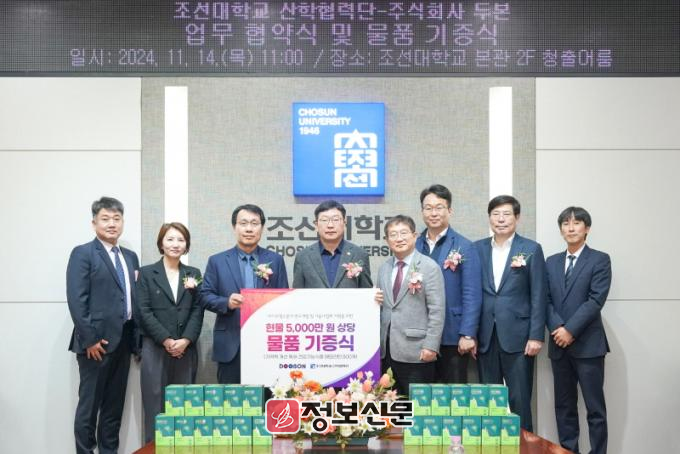 또한, 이날 협약식에는 기억력 개선에 도움을 주는 약 5천만 원 상당의 특허 건강기능식품 ‘메모리턴’ 800개를 전달하는 기증식도 진행됐다. 이를 통해 조선대 연구진은 바이오헬스 분야의 연구와 기술 상용화에 더욱 집중할 수 있게 됐다.