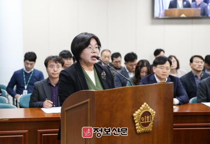 ![]() 전라남도의회 제386회 제2차 정례회 제1차 기획행정위원회 회의(14일)에서 오미화 의원이 조례 제안을 설명하고 있다. |