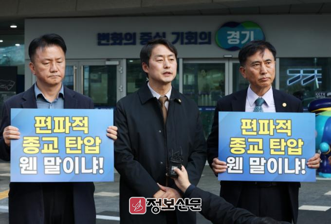 그러면서 “수도권기독교총연합회(수기총)의 집회가 있고 난 뒤 김동연 지사가 대관 취소 결정을 했다. 김동연 지사의 종교 편향과 편파적 종교탄압이라고 생각할 수밖에 없다. 이에 대해 의사결정자 본인은 왜 아무런 설명을 하지 않는 것인가”라고 규탄했다.