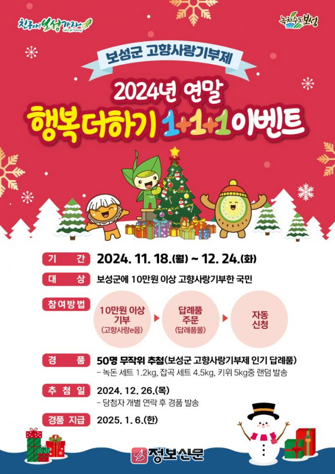 ![]() 보성군, 고향사랑기부제 연말 행복더하기(1+1+1) 이벤트 추진 |