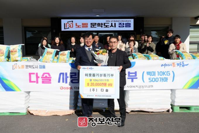 ㈜다솔은 장흥 바이오식품산업단지 1호 입주 기업으로 2017년부터 매년 장흥군 저소득층을 위해 쌀을 기탁하고 있다.