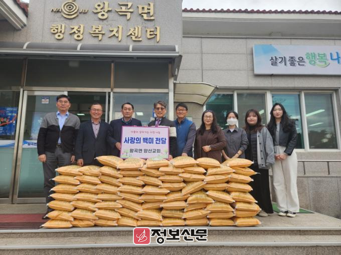 양산교회는 매년 왕곡면에 백미를 후원하고 지역사회를 위한 봉사활동을 실천하며 아름다운 선행을 꾸준히 이어오고 있다.