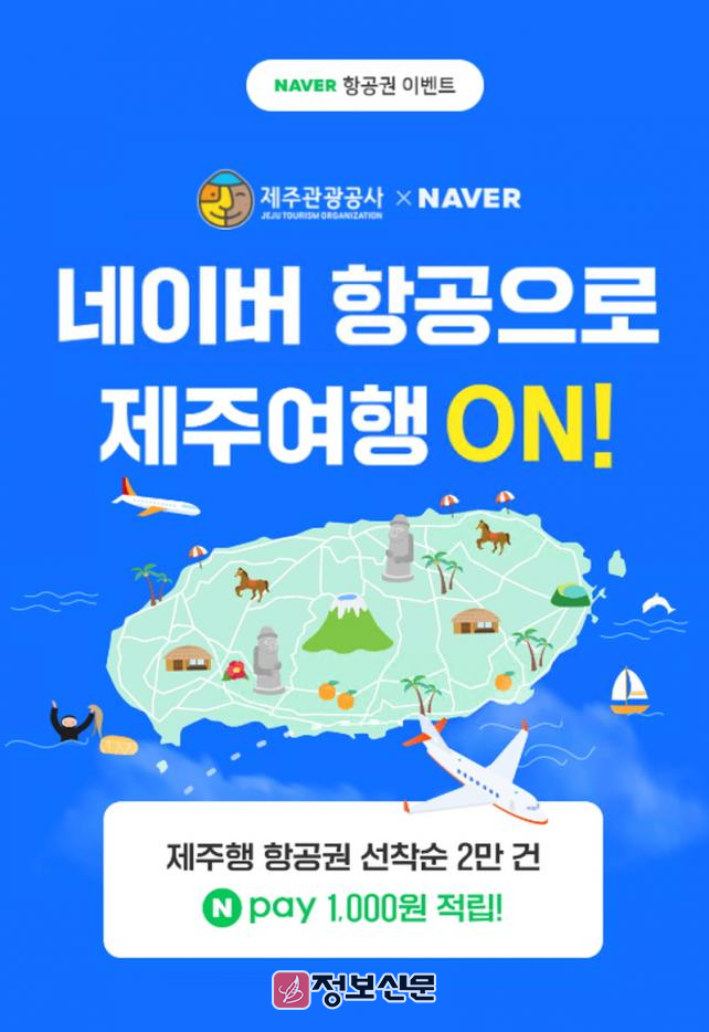 이와 함께 제주관광공사는 18일 오전 10시부터 네이버와의 협업을 통해 ‘네이버로 제주 여행 ON!’ 이벤트를 진행한다. 해당 이벤트는 네이버 항공권을 통해 제주행 항공권을 구매하고 탑승을 완료하면 네이버페이 포인트 1,000원이 적립된다. 선착순 2만명을 대상으로 2025년 1월에 일괄 지급된다.