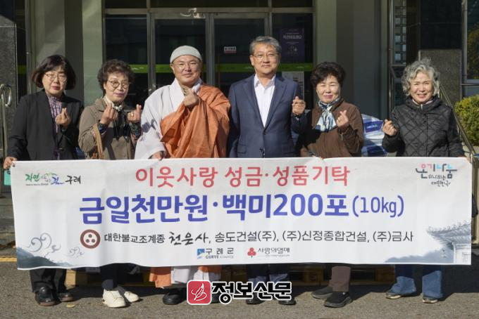 이날 구례군청에서 열린 전달식에는 김순호 군수와 천은사의 대진 스님 등이 참석했다.