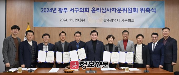 윤리심사자문위원회는 교수, 법조인, 지방자치전문가 등 민간위원 7명으로 구성했으며 위원장에는 안태기 광주대 교수가, 부위원장에는 이은주 전 서구의회 부의장이 각각 선출됐다.