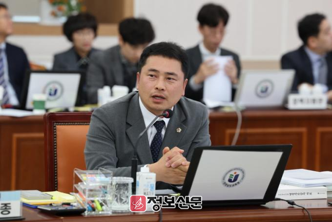 ![]() 임형석 전남도의원이 11월 12일, 전남교육청 대회의실에서 열린 전남도교육청 소관 행정사무감사에서 질의하고 있다.