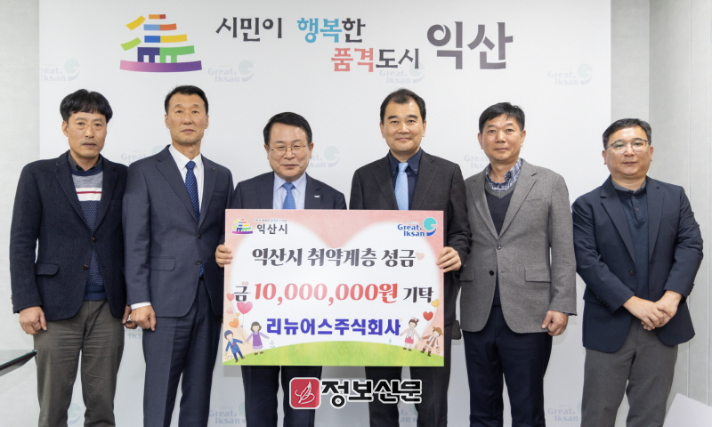 정헌율 익산시장은 "어렵고 힘든 시기에도 지역사회에 관심을 갖고 지속적인 나눔을 실천하는 리뉴어스㈜에 감사하다"며 "기탁하신 성금은 도움이 필요한 이웃들에게 잘 전달하겠다"고 답했다.