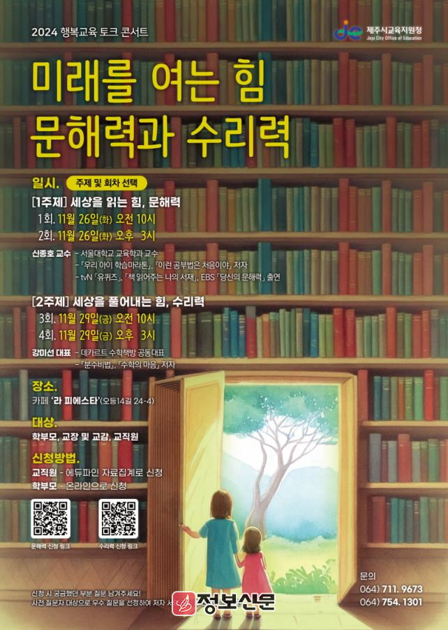 제주시교육지원청 관계자는 “이번 행사는 학부모와 교사들이 한자리에 모여 디지털 시대 학생들의 성장 방안을 함께 모색할 수 있는 뜻깊은 기회가 될 것”이라며 “미래 교육의 핵심 역량인 문해력과 수리력 증진을 위해 지속적인 지원과 노력을 아끼지 않겠다”고 말했다.