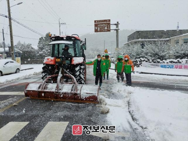 제설 사각지대 최소화를 위해 서귀포시자율방재단과도 협조체계를 구축하여 강설 시 읍면동별 마을제설반을 구성하여 트랙터, 소형제설장비 등을 이용하여 마을안길 및 이면도로 등에 대한 제설작업을 지원한다.