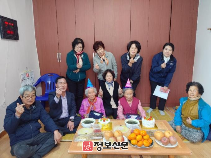 어르신들의 말벗이 되어드리며 건강상태도 확인하는 등 이웃 사랑의 정을 전달하고 있다, 생신 상을 받은 장수 어르신께서는“오래 살다보니 이렇게 좋은 날이 온다.