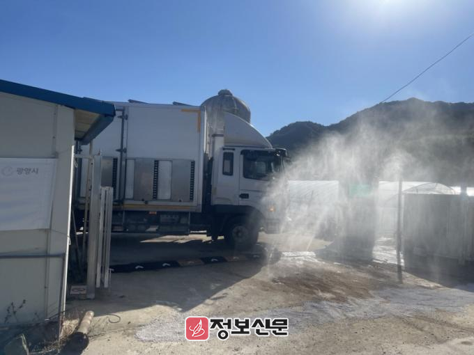 광양시는 2024년 10월부터 2025년 2월까지의 기간을 특별방역 기간으로 정하고 방역상황실과 축산차량 소독을 위한 거점 소독시설을 운영하고 있다.