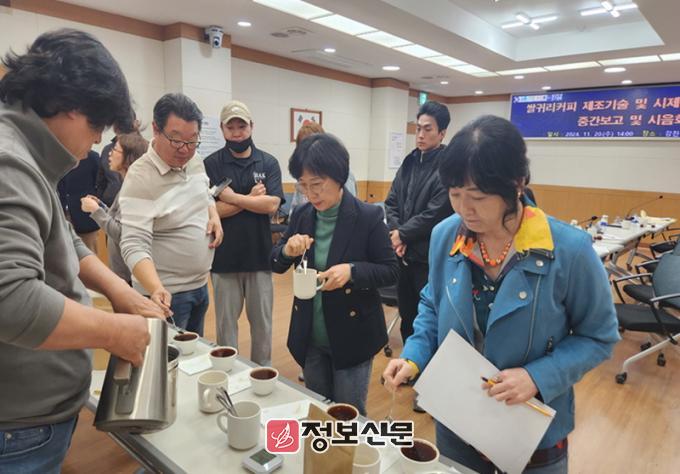 군은 이번 용역으로 최종 제품이 개발될 경우, 개발된 제품을 관내 커피업소에서 판매가 가능하도록 커피업체의 의견을 듣고 개선 사항을 들을 예정이다. 이날 개발된 제품에 대해 시음회를 진행한 후 평가표도 작성, 최종 제품 출시 때 보완· 반영할 계획이다.