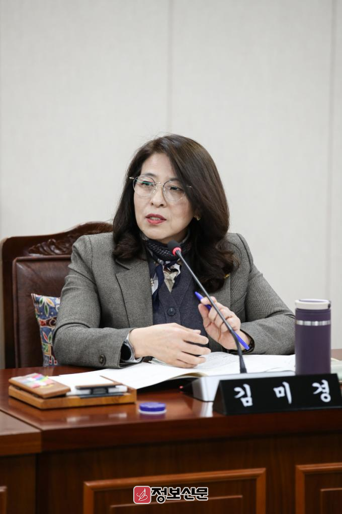 ![]() 전라남도의회 제386회 제2차 정례회 보건복지환경위원회 소관 환경산림국 예산안심사(20일)에서 김미경 의원이 집행부를 향해 질의하고 있다. |