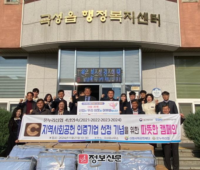 또한, 이날 행사는 곡성읍 이장단협의회와 함께 “지역사회공헌 인증기업 4년 연속 선정” 기념을 위한 따뜻한 캠페인도 함께 진행하였다. 기부물품은 곡성읍 각 마을 경로당에 전달하여 어르신들의 따스한 겨울나기를 위해 쓰일 계획이다.