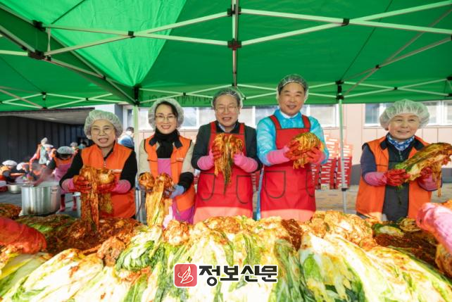 이날 행사는 정헌율 익산시장과 김경진 익산시의장, 시의원을 비롯해 12개 여성단체 회원 등 80여 명이 참여해 800여 포기의 김치를 준비했다. 특히 지난해에 이어 국민건강보험 익산지사 직원 10여 명도 참석해 김장 준비에 힘을 보탰다.