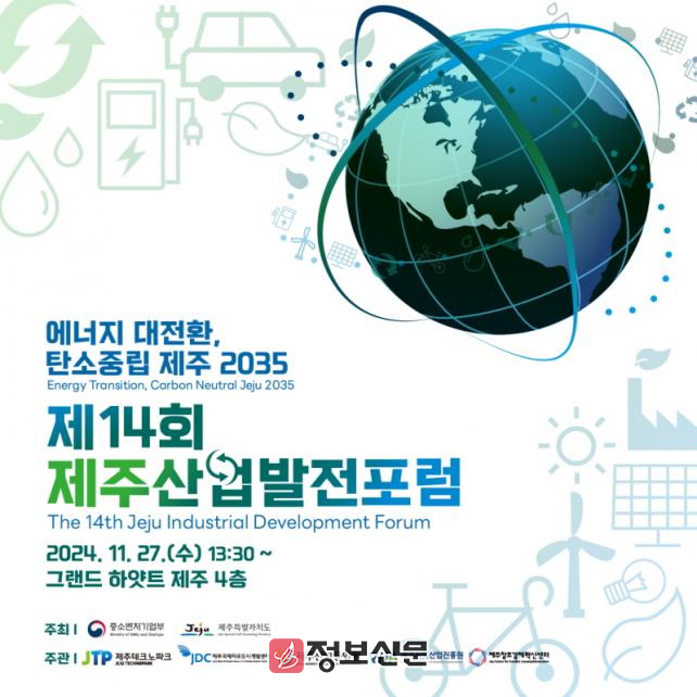 이번 제14회 제주산업발전포럼은 오는 27일 오후 1시 30분 그랜드 하얏트 제주에서 ‘에너지 대전환, 탄소중립 제주 2035’를 주제로 유관기관 및 산학연관 관계자 등 300여 명이 참석한 가운데 열릴 예정이다. JTP 기업지원단에서 추진해온 제주지역 성장사다리 지원사업 성과물도 함께 전시된다.