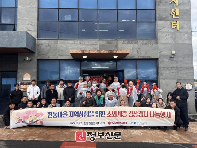 이번 행사는 오리온재단에서 기탁한 용암해수산업 활성화 기금으로 마련됐다. 이날 담근 국내산 김장김치 300포기는 지역 취약계층 50여 가구에 전달될 예정이다.