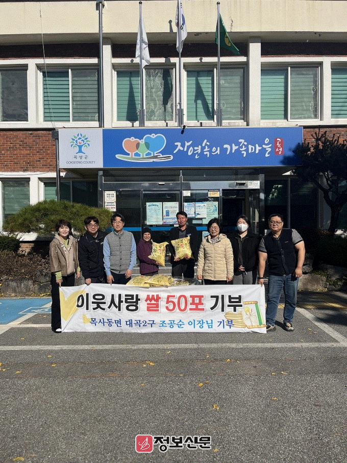 박광천 목사동면장은“매년 겨울이 다가오면 잊지 않고 쌀 기부를 해주시는 조공순 이장님께 진심으로 감사드린다.”고 전했다.