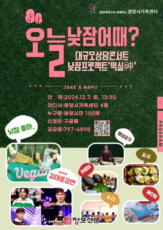 ![]() 광양시 가족센터, 심리상담콘서트 낮잠 프로젝트: 떡실 神 개최 |