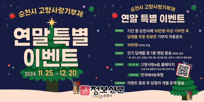 ![]() 순천시, 고향사랑기부제 연말 특별 이벤트 실시 |