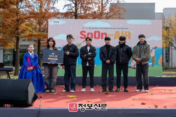 2024 가요제 ‘SoOn-AIR’는 ‘Soon’(곧)과 ‘On-AIR’(방송 중)를 결합한 것으로, 학생회관 리모델링 후 새롭게 출발하는 대학 언론사의 라디오 복귀를 상징적으로 표현했다. 이를 기념하여 라디오 공개방송 형식으로 진행된 이번 행사는 참가자의 사연과 노래가 어우러지는 독특한 형식과 독창적인 공연을 선보이며 관객들의 뜨거운 호응을 얻었다.