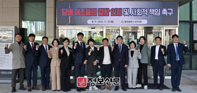 ![]() 광주 서구의회, ‘담배 제조물 결함 인정 및 사회적 책임’ 촉구 결의▴ 결의 사진(사진=광주 서구의회 제공)