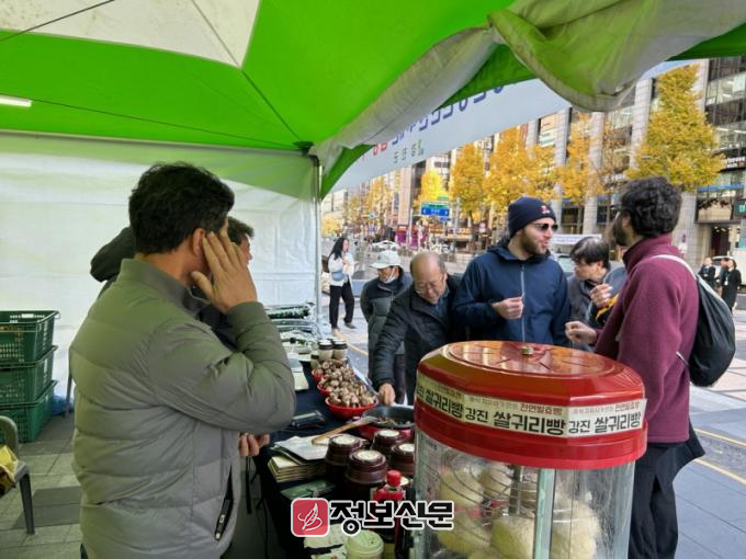 행사에 참여한 업체들은 청정지역에서 만들고 재배한 농수특산물을 선보여 지나가는 서울 시민들의 발걸음을 이끌었다. 중간 유통 과정을 생략한 직거래 방식으로 진행된 이번 행사는 생산자에게는 정당한 수익을 보장하고, 소비자에게는 합리적인 가격과 신선한 품질의 농산물을 제공하며 큰 호응을 얻었다.
