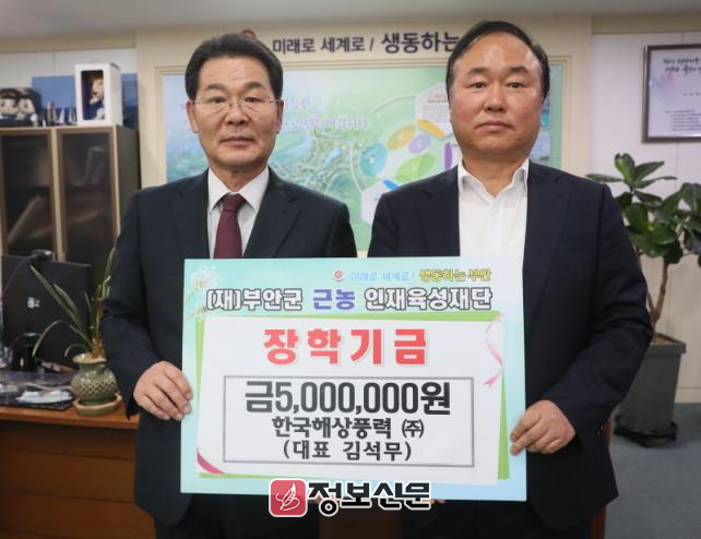 ![]() 한국해상풍력, 부안군 근농인재육성장학금 500만원 기탁 |