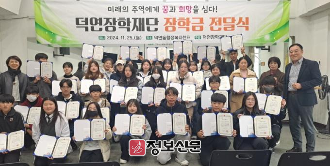 김양희 덕연동장은 “덕연장학재단은 설립 이후 지금까지 약 650명의 학생들에게 장학금을 지원하며, 전국적에서도 보기 드문 행정복지센터 단위 장학재단으로 자리매김했다”며, “한 해도 빠짐없이 장학금을 지급하며 지역사회를 따뜻하게 만들어주신 모든 분들께 감사드린다”고 말했다.