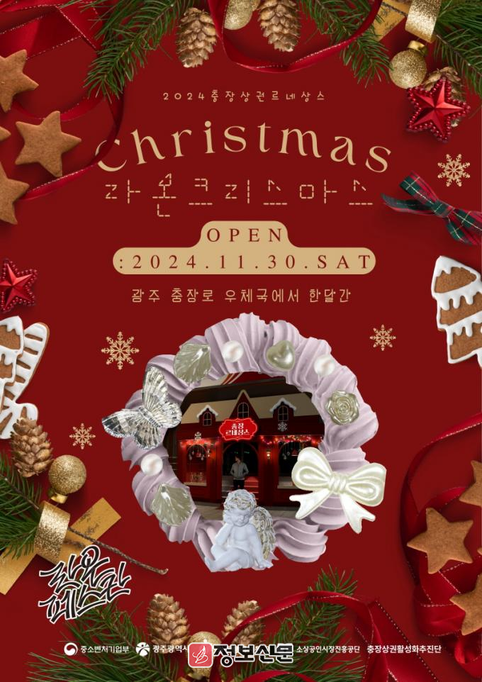 충장로 우체국 앞에 ‘비밀의 집’ 콘셉트로 포토존과 성탄절 트리를 설치할 예정이다. 우체국 주변 상가들도 행사에 동참, 성탄절 트리를 매장 앞에 비치해 다양한 볼거리를 제공할 것으로 보인다.