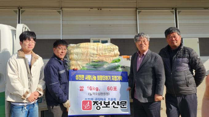 이번에 기탁한 백미는 성전면 다함께 돌봄센터와 관내 복지 사각지대에 놓인 소외계층 가정에 전달돼 어려운 이웃들에게 큰 힘이 될 예정이다.
