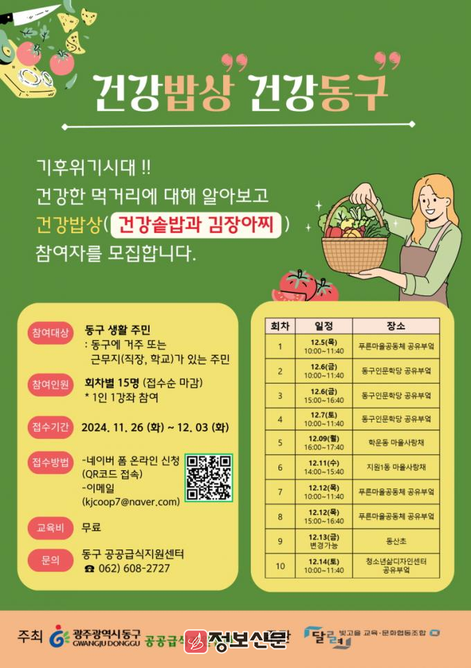 ![]() 광주시 동구, ‘건강밥상 건강동구’ 참여자 모집 |